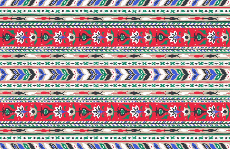 Геометрический фольклорный орнамент икат. Племенная этническая векторная текстура. Бесшовный полосатый узор в стиле ацтеков. Рисунок племенной вышивки. Индийский, скандинавский, цыганский, мексиканский, народный узор