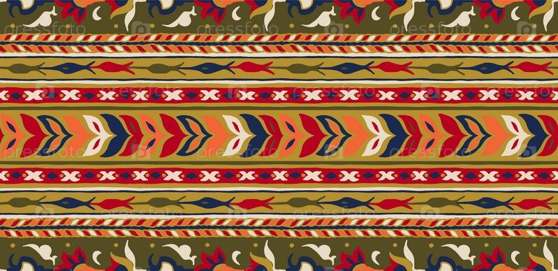 Геометрический фольклорный орнамент икат. Племенная этническая векторная текстура. Бесшовный полосатый узор в стиле ацтеков. Рисунок племенной вышивки. Индийский, скандинавский, цыганский, мексиканский, народный узор