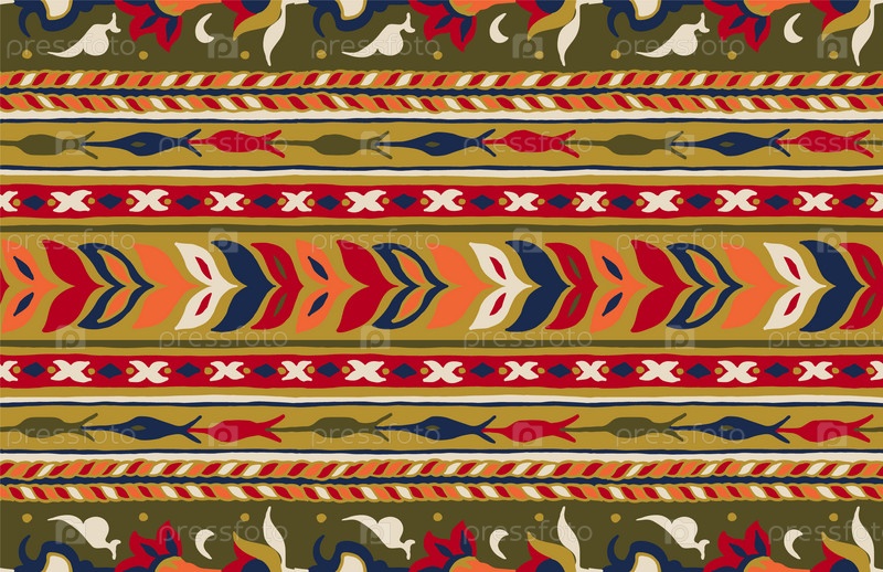 Геометрический фольклорный орнамент икат. Племенная этническая векторная текстура. Бесшовный полосатый узор в стиле ацтеков. Рисунок племенной вышивки. Индийский, скандинавский, цыганский, мексиканский, народный узор