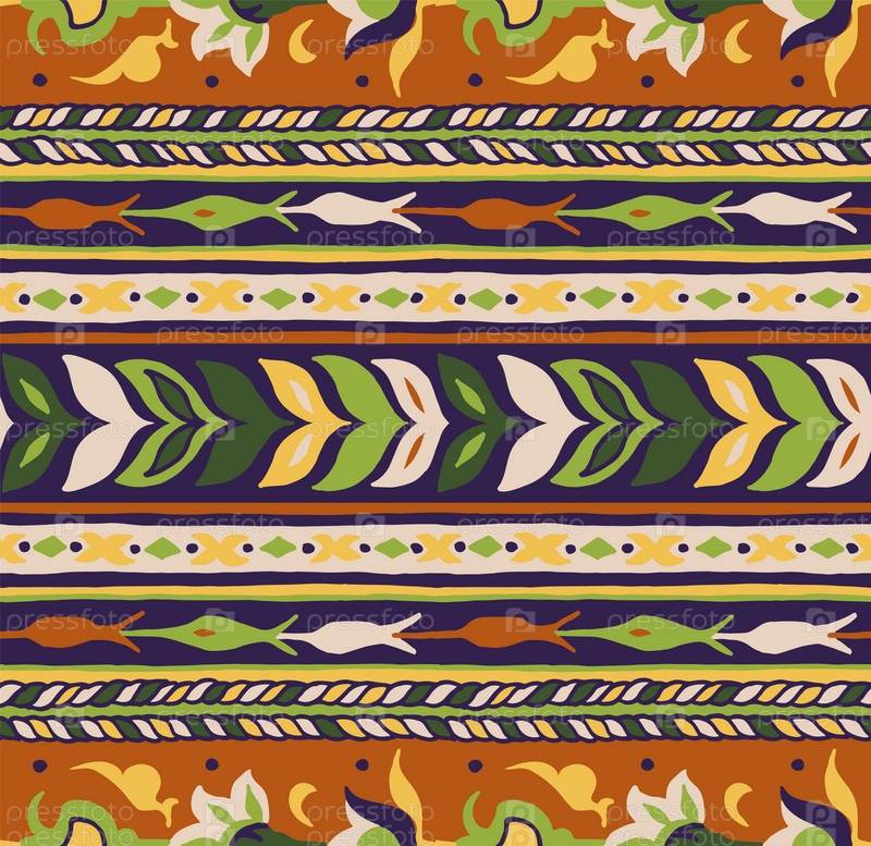 Геометрический фольклорный орнамент икат. Племенная этническая векторная текстура. Бесшовный полосатый узор в стиле ацтеков. Рисунок племенной вышивки. Индийский, скандинавский, цыганский, мексиканский, народный узор