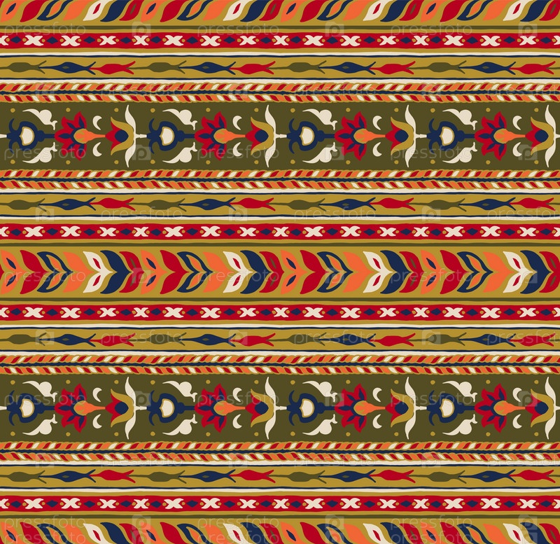 Геометрический фольклорный орнамент икат. Племенная этническая векторная текстура. Бесшовный полосатый узор в стиле ацтеков. Рисунок племенной вышивки. Индийский, скандинавский, цыганский, мексиканский, народный узор