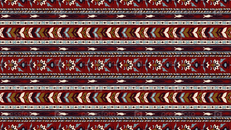 Геометрический фольклорный орнамент икат. Племенная этническая векторная текстура. Бесшовный полосатый узор в стиле ацтеков. Рисунок племенной вышивки. Индийский, скандинавский, цыганский, мексиканский, народный узор
