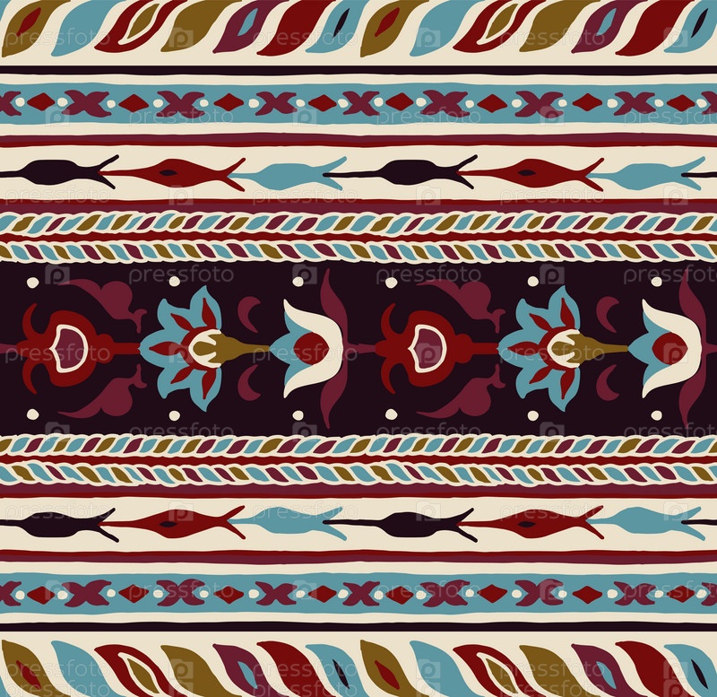 Геометрический фольклорный орнамент икат. Племенная этническая векторная текстура. Бесшовный полосатый узор в стиле ацтеков. Рисунок племенной вышивки. Индийский, скандинавский, цыганский, мексиканский, народный узор