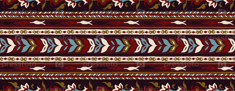 Геометрический фольклорный орнамент икат. Племенная этническая векторная текстура. Бесшовный полосатый узор в стиле ацтеков. Рисунок племенной вышивки. Индийский, скандинавский, цыганский, мексиканский, народный узор