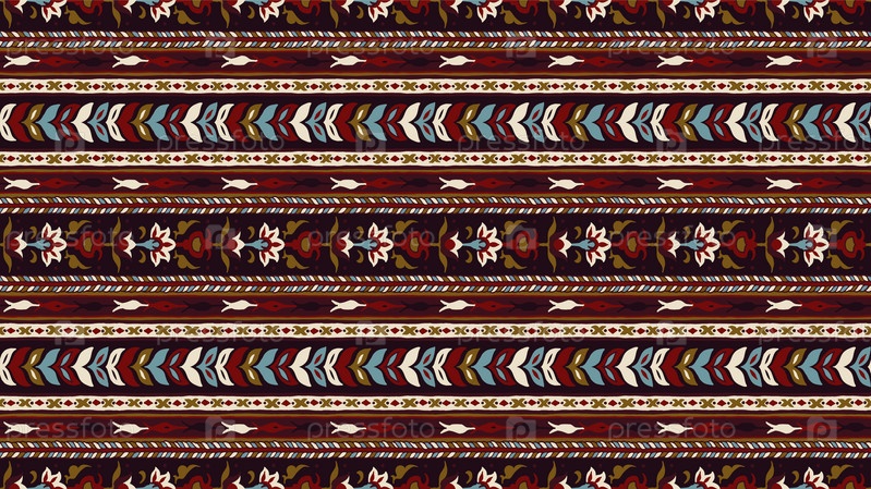 Геометрический фольклорный орнамент икат. Племенная этническая векторная текстура. Бесшовный полосатый узор в стиле ацтеков. Рисунок племенной вышивки. Индийский, скандинавский, цыганский, мексиканский, народный узор