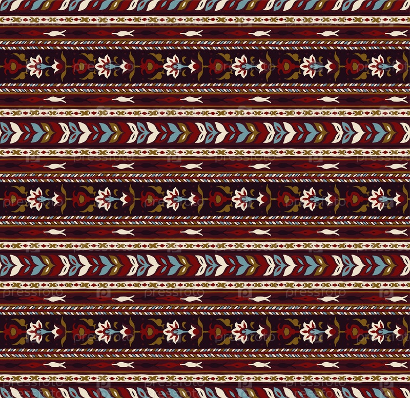Геометрический фольклорный орнамент икат. Племенная этническая векторная текстура. Бесшовный полосатый узор в стиле ацтеков. Рисунок племенной вышивки. Индийский, скандинавский, цыганский, мексиканский, народный узор