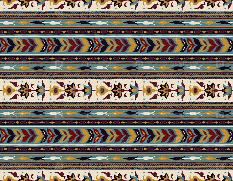 Геометрический фольклорный орнамент икат. Племенная этническая векторная текстура. Бесшовный полосатый узор в стиле ацтеков. Рисунок племенной вышивки. Индийский, скандинавский, цыганский, мексиканский, народный узор