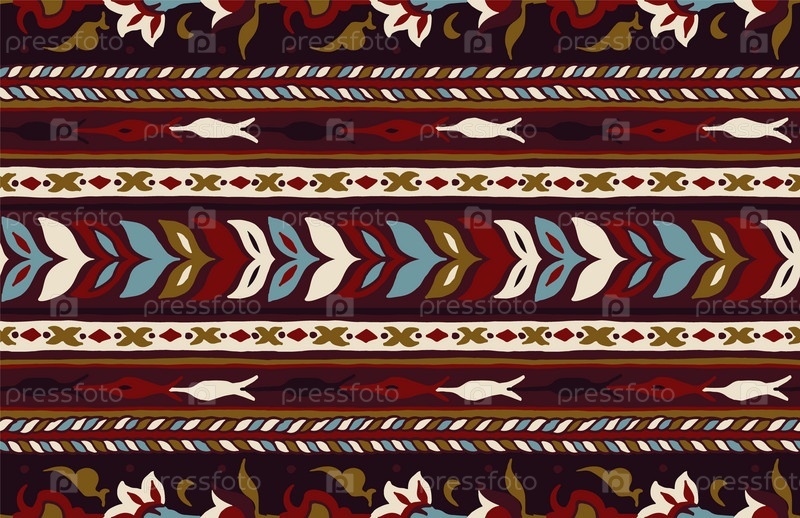 Геометрический фольклорный орнамент икат. Племенная этническая векторная текстура. Бесшовный полосатый узор в стиле ацтеков. Рисунок племенной вышивки. Индийский, скандинавский, цыганский, мексиканский, народный узор