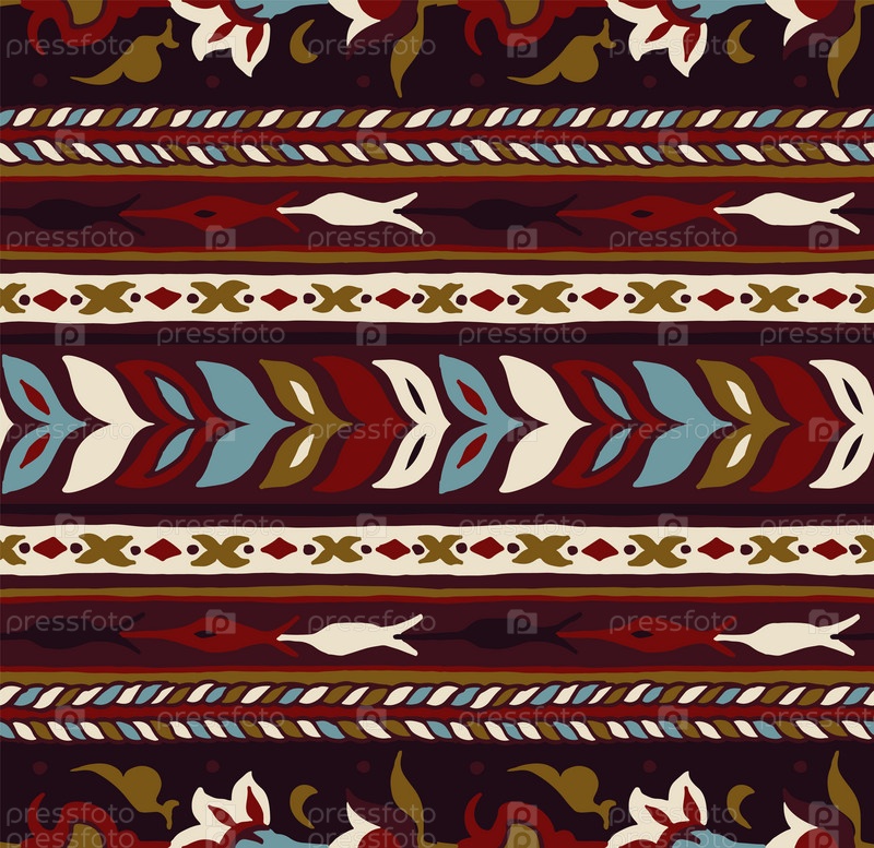Геометрический фольклорный орнамент икат. Племенная этническая векторная текстура. Бесшовный полосатый узор в стиле ацтеков. Рисунок племенной вышивки. Индийский, скандинавский, цыганский, мексиканский, народный узор