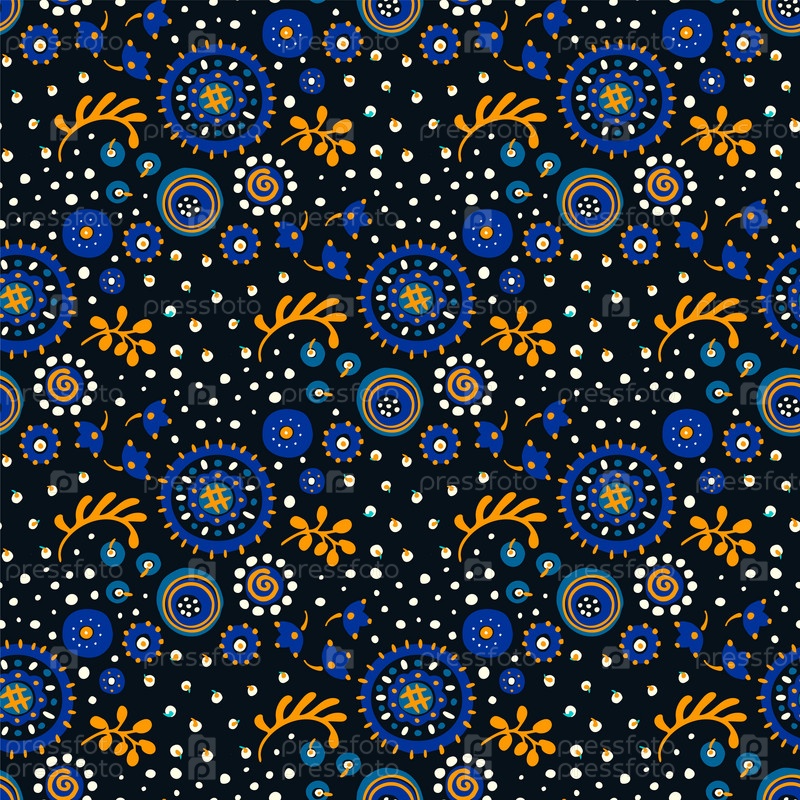 Бесшовный узор с фантазийными цветами, этнический вращающийся повторяющийся дизайн ткани и плитки, натуральные обои, иллюстрация завитка цветочного декора. Пейсли печать рисованной элементы.Украинский узор