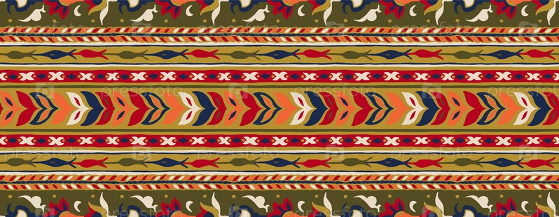 Геометрический фольклорный орнамент икат. Племенная этническая векторная текстура. Бесшовный полосатый узор в стиле ацтеков. Рисунок племенной вышивки. Индийский, скандинавский, цыганский, мексиканский, народный узор