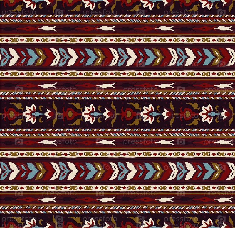 Геометрический фольклорный орнамент икат. Племенная этническая векторная текстура. Бесшовный полосатый узор в стиле ацтеков. Рисунок племенной вышивки. Индийский, скандинавский, цыганский, мексиканский, народный узор