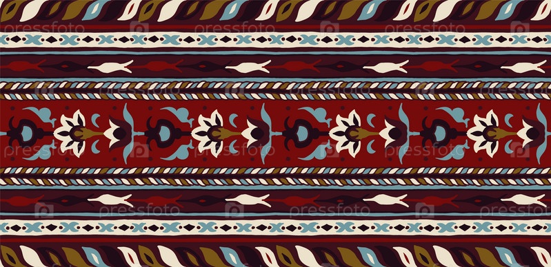 Геометрический фольклорный орнамент икат. Племенная этническая векторная текстура. Бесшовный полосатый узор в стиле ацтеков. Рисунок племенной вышивки. Индийский, скандинавский, цыганский, мексиканский, народный узор