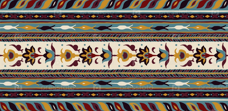 Геометрический фольклорный орнамент икат. Племенная этническая векторная текстура. Бесшовный полосатый узор в стиле ацтеков. Рисунок племенной вышивки. Индийский, скандинавский, цыганский, мексиканский, народный узор