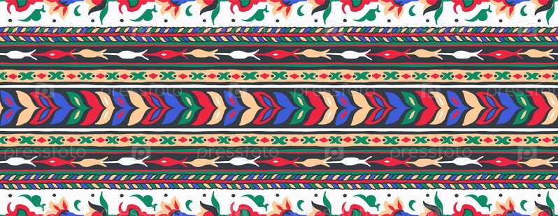 Геометрический фольклорный орнамент икат. Племенная этническая векторная текстура. Бесшовный полосатый узор в стиле ацтеков. Рисунок племенной вышивки. Индийский, скандинавский, цыганский, мексиканский, народный узор