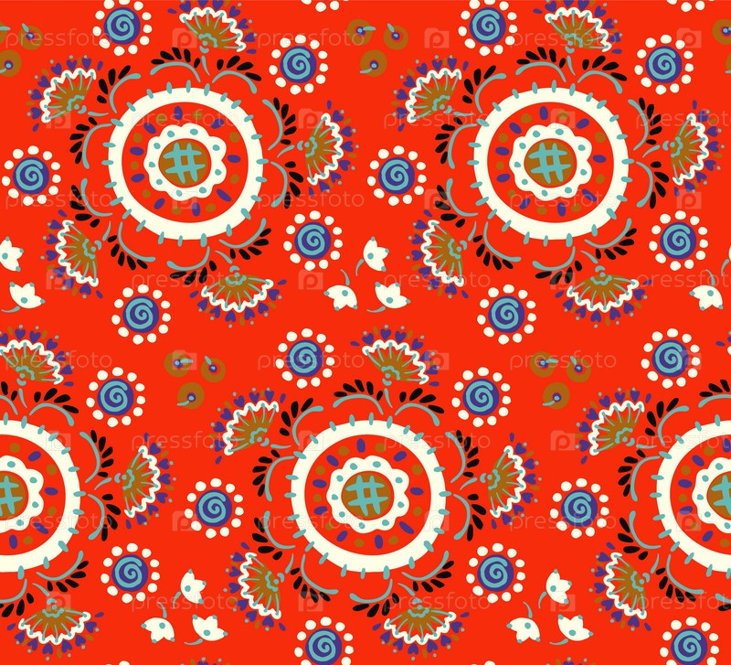 Бесшовный узор с фантазийными цветами, этнический вращающийся повторяющийся дизайн ткани и плитки, натуральные обои, иллюстрация завитка цветочного декора. Пейсли печать рисованной элементы.Украинский узор