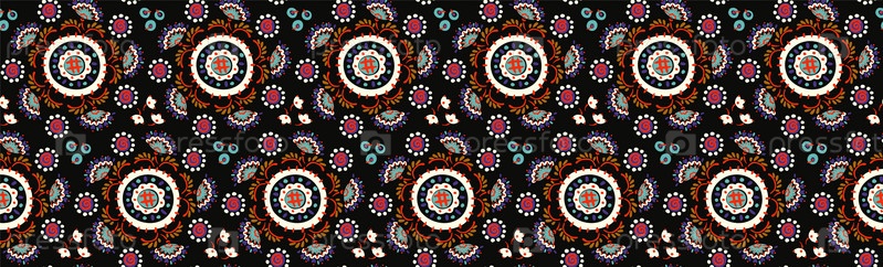 Бесшовный узор с фантазийными цветами, этнический вращающийся повторяющийся дизайн ткани и плитки, натуральные обои, иллюстрация завитка цветочного декора. Пейсли печать рисованной элементы.Украинский узор