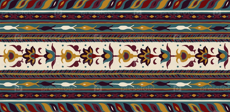 Геометрический фольклорный орнамент икат. Племенная этническая векторная текстура. Бесшовный полосатый узор в стиле ацтеков. Рисунок племенной вышивки. Индийский, скандинавский, цыганский, мексиканский, народный узор