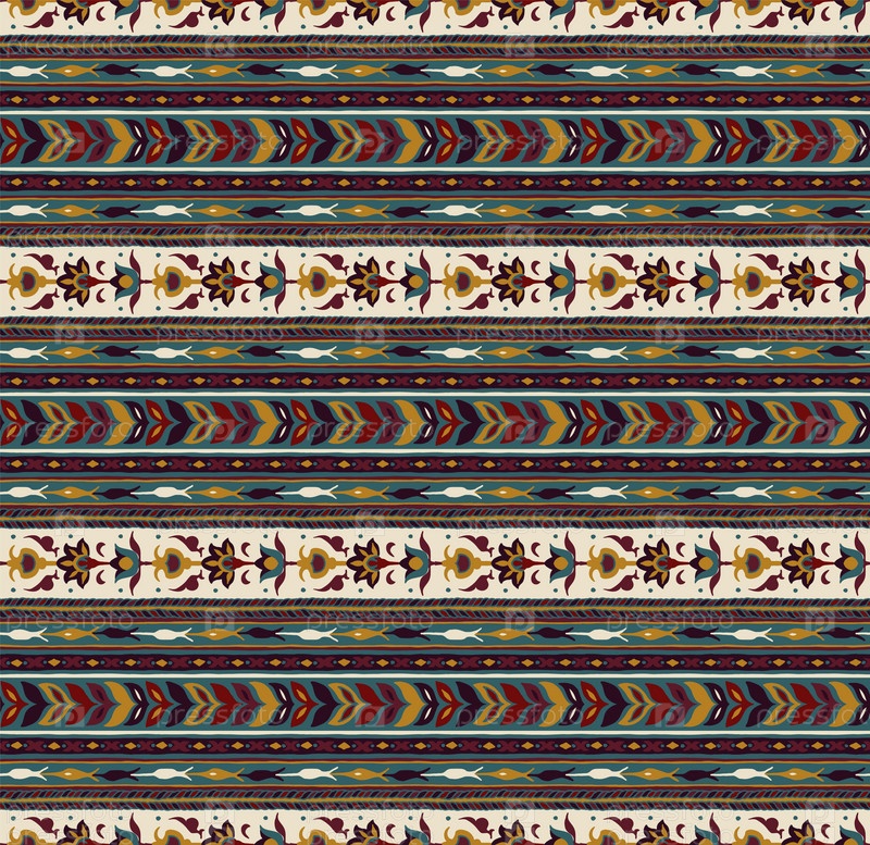 Геометрический фольклорный орнамент икат. Племенная этническая векторная текстура. Бесшовный полосатый узор в стиле ацтеков. Рисунок племенной вышивки. Индийский, скандинавский, цыганский, мексиканский, народный узор