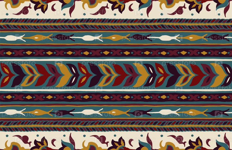 Геометрический фольклорный орнамент икат. Племенная этническая векторная текстура. Бесшовный полосатый узор в стиле ацтеков. Рисунок племенной вышивки. Индийский, скандинавский, цыганский, мексиканский, народный узор