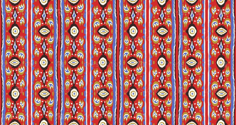 Икат геометрический фольклорный орнамент с бриллиантами. Племенная этническая векторная текстура. Бесшовный полосатый узор в стиле ацтеков. Народная вышивка. Индийский, скандинавский, цыганский, мексиканский, африканский ковер