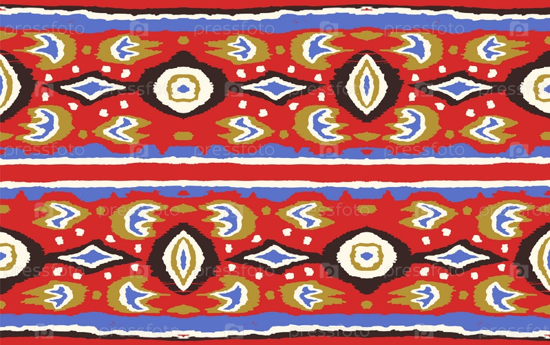 Икат геометрический фольклорный орнамент с бриллиантами. Племенная этническая векторная текстура. Бесшовный полосатый узор в стиле ацтеков. Народная вышивка. Индийский, скандинавский, цыганский, мексиканский, африканский ковер