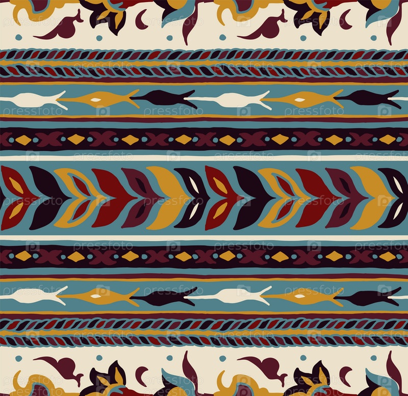 Геометрический фольклорный орнамент икат. Племенная этническая векторная текстура. Бесшовный полосатый узор в стиле ацтеков. Рисунок племенной вышивки. Индийский, скандинавский, цыганский, мексиканский, народный узор