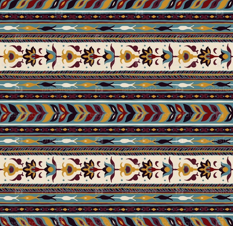 Геометрический фольклорный орнамент икат. Племенная этническая векторная текстура. Бесшовный полосатый узор в стиле ацтеков. Рисунок племенной вышивки. Индийский, скандинавский, цыганский, мексиканский, народный узор