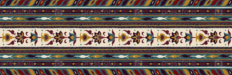 Геометрический фольклорный орнамент икат. Племенная этническая векторная текстура. Бесшовный полосатый узор в стиле ацтеков. Рисунок племенной вышивки. Индийский, скандинавский, цыганский, мексиканский, народный узор
