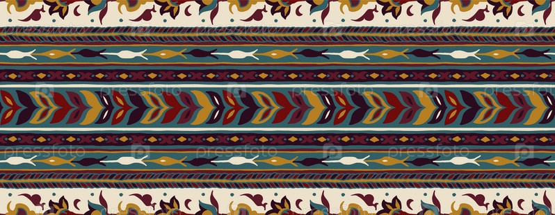 Геометрический фольклорный орнамент икат. Племенная этническая векторная текстура. Бесшовный полосатый узор в стиле ацтеков. Рисунок племенной вышивки. Индийский, скандинавский, цыганский, мексиканский, народный узор