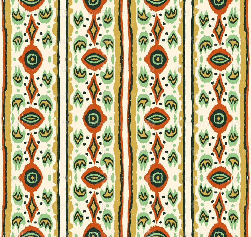 Икат геометрический фольклорный орнамент с бриллиантами. Племенная этническая векторная текстура. Бесшовный полосатый узор в стиле ацтеков. Народная вышивка. Индийский, скандинавский, цыганский, мексиканский, африканский ковер