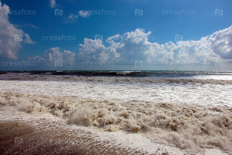 Штормовые волны на море во время летнего урагана