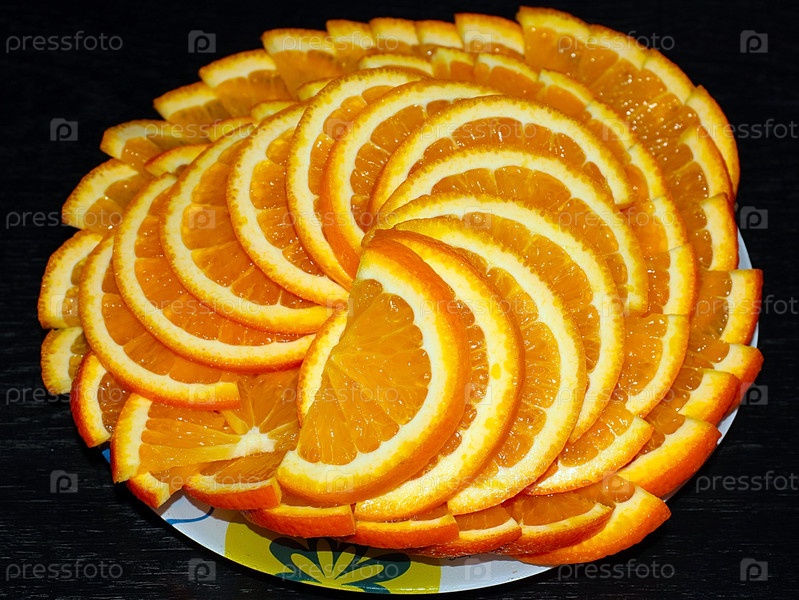 Прекрасный нарезанный спелый апельсин как часть угощения