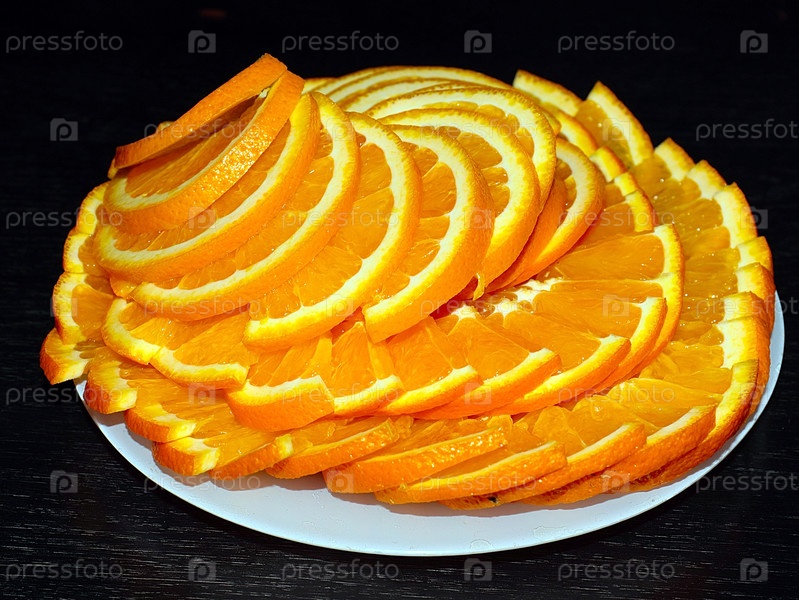 Прекрасный нарезанный спелый апельсин как часть угощения