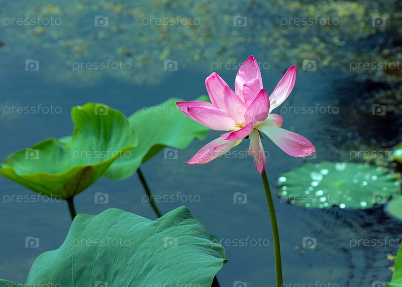 Красивый цветок лотоса на поверхности воды озера