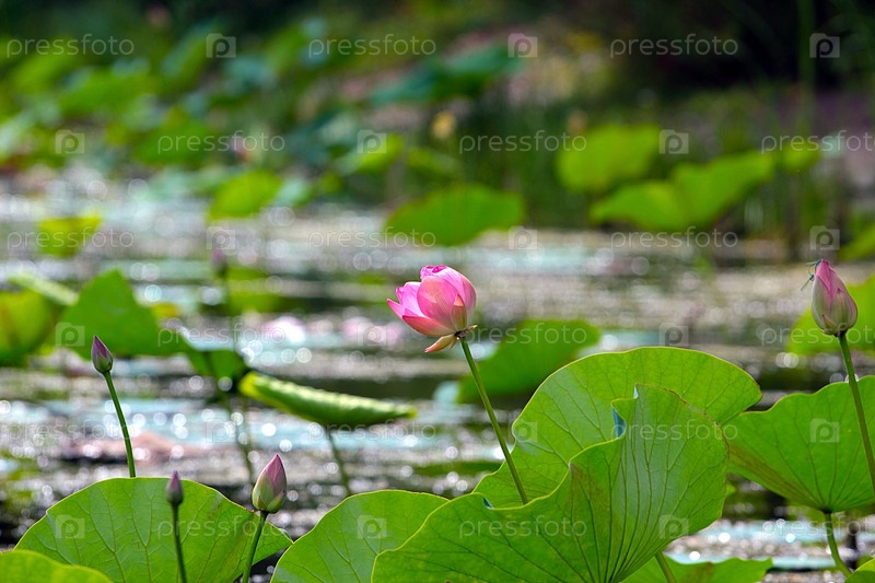 Красивый цветок лотоса на поверхности воды озера