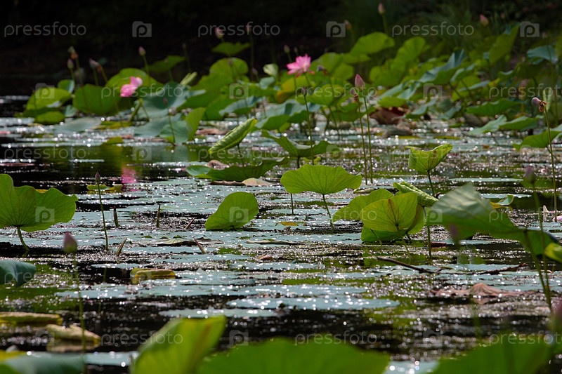 Красивый цветок лотоса на поверхности воды озера