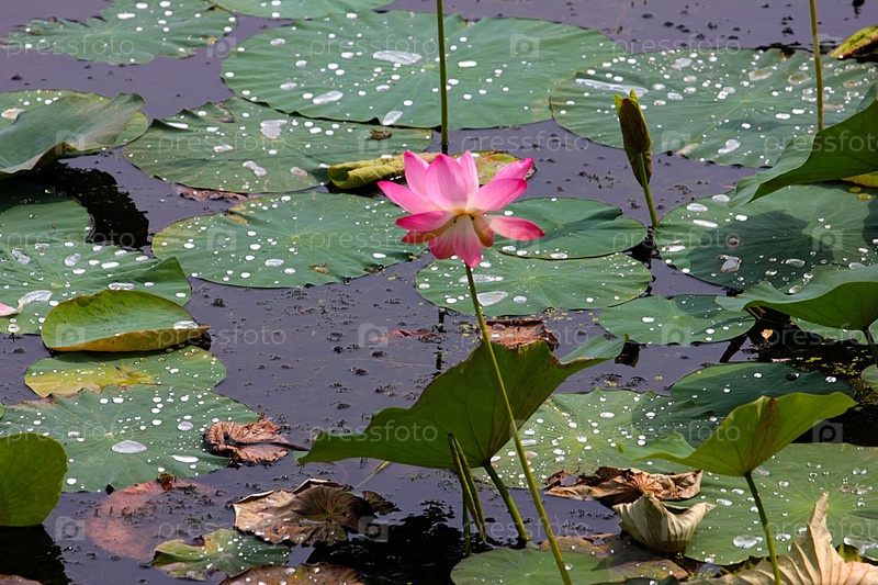 Красивый цветок лотоса на поверхности воды озера
