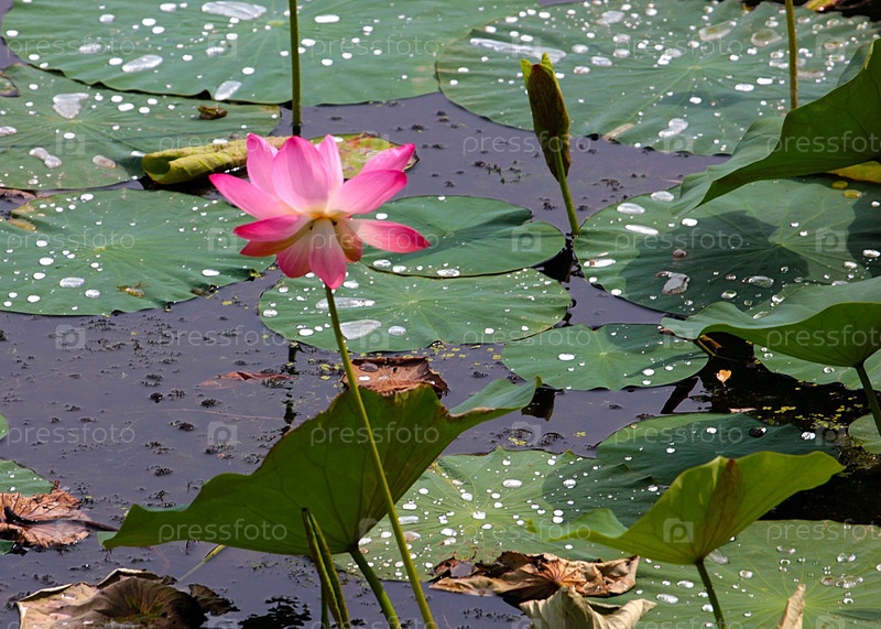 Красивый цветок лотоса на поверхности воды озера