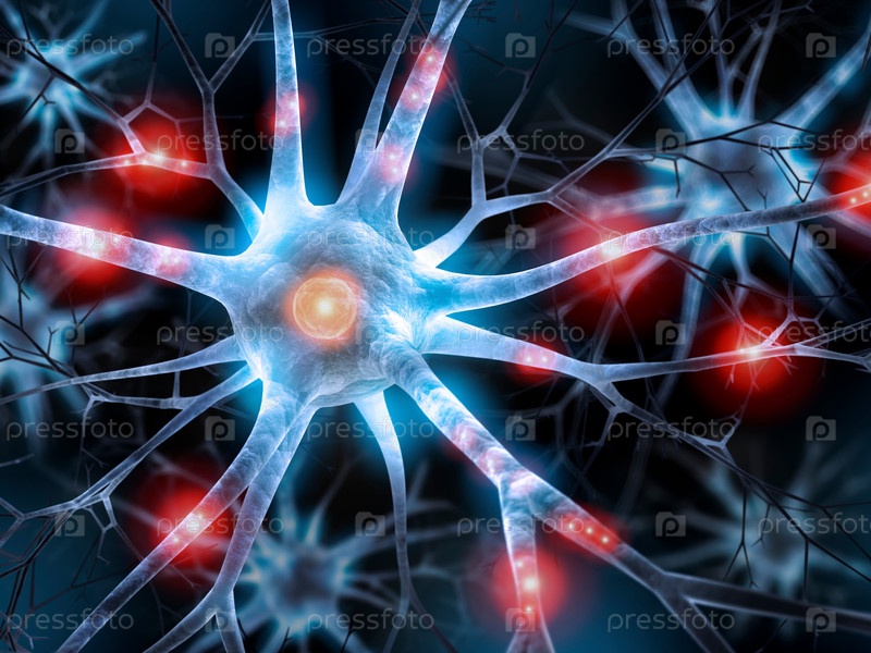 Активная нервная клетка - 3D иллюстрация