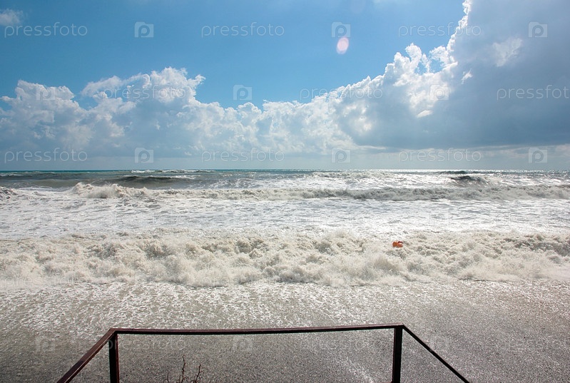 Штормовые волны на море во время летнего урагана