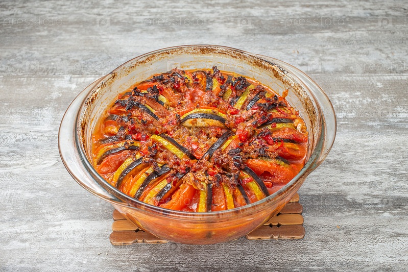 Приготовленный запеченный рататуй