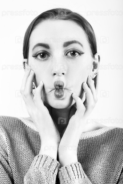 Девушка показывает губы
