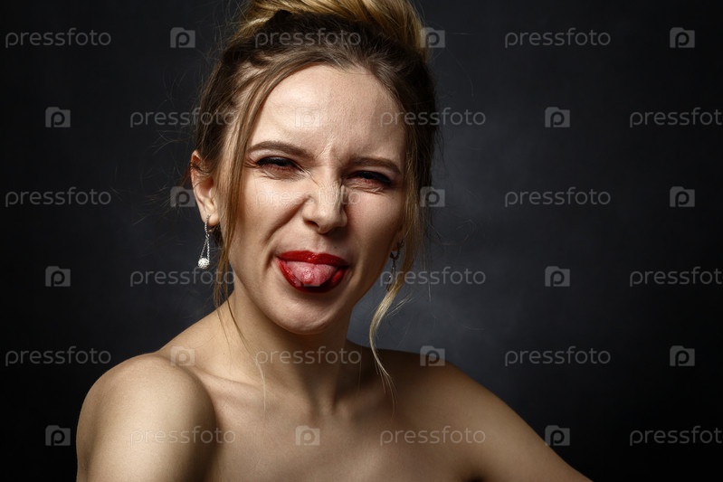 Женщина показывает язык