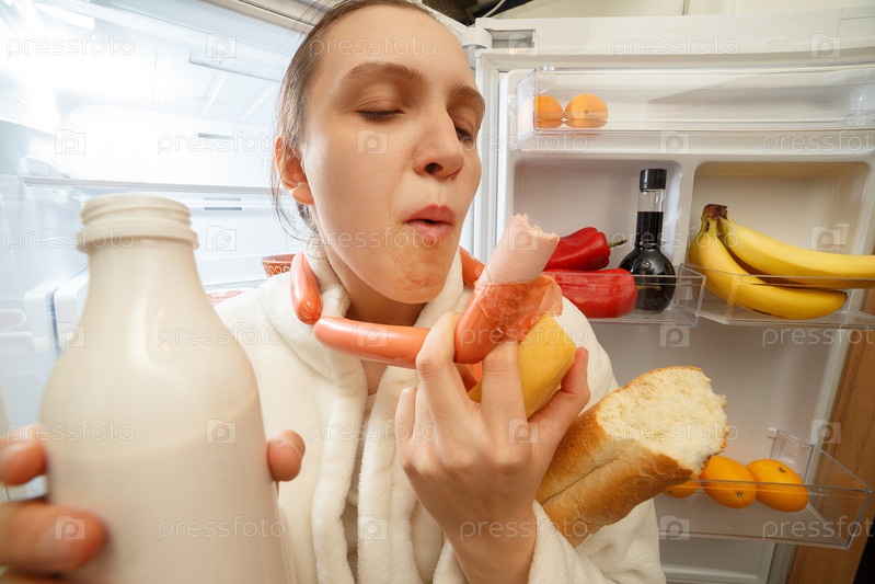 Голодная женщина ест