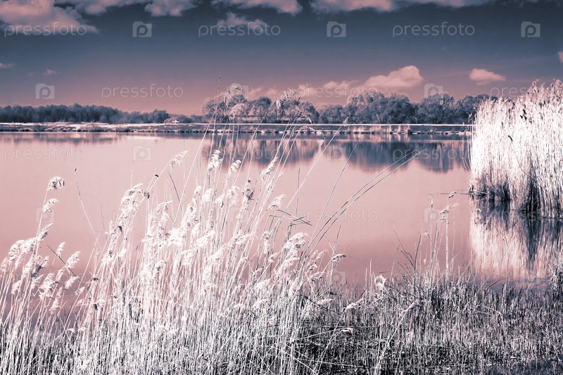 Большое красивое озеро, с заросшими камышом берегами