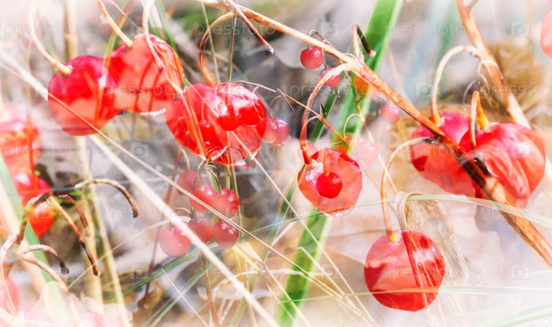 Спелые ягоды майского ландыша осенью