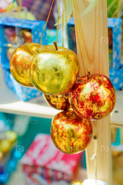 Декоративные золотые яблоки для украшения елки