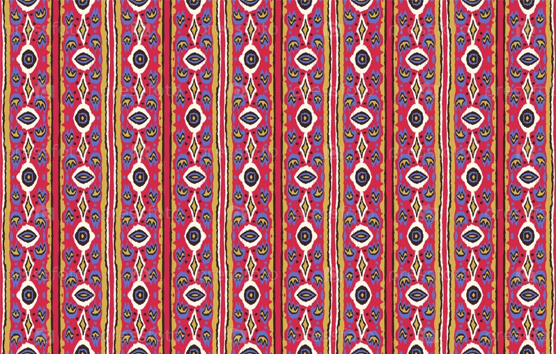 Икат геометрический фольклорный орнамент с бриллиантами. Племенная этническая векторная текстура. Бесшовный полосатый узор в стиле ацтеков. Народная вышивка. Индийский, скандинавский, цыганский, мексиканский, африканский ковер