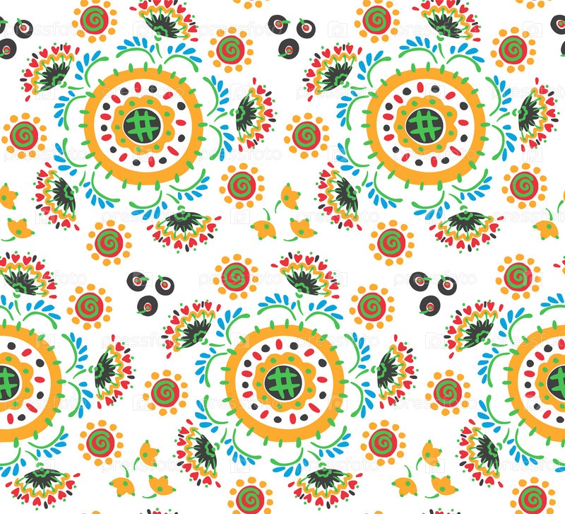 Бесшовный узор с фантазийными цветами, этнический вращающийся повторяющийся дизайн ткани и плитки, натуральные обои, иллюстрация завитка цветочного декора. Пейсли печать рисованной элементы.Украинский узор